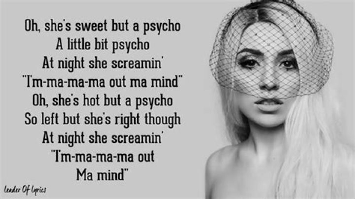 Kinda crazy She's poison but tasty Yeah, people say, "Run, don't walk away." 'Cause she's sweet but a psycho A little bit psycho At night she's screamin', "I'm-ma-ma-ma out my mind." See, someone said, "Don't drink her potions She'll kiss your neck with no emotions When she's mean, you know you love itAva Max - Sweet But Psycho Lyrics - Lyrics Mania