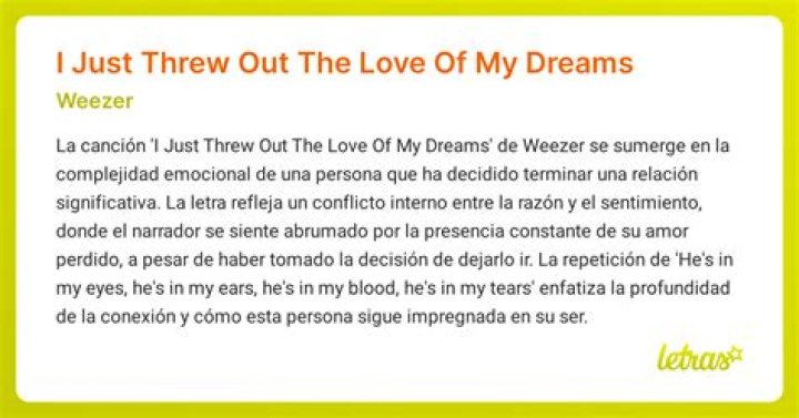Significado de I Just Threw Out the Love of My Dreams por Weezer