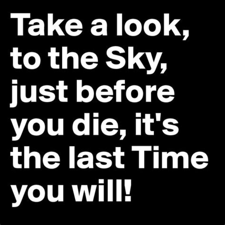 Get lyrics of Take a look to the sky before you die it is the last time you will song you love. List contains Take a look to the sky before you die it is the last time you will song lyrics of older one songs and hot new releases. Get known every word of your favorite song or start your own karaoke party tonight :-).