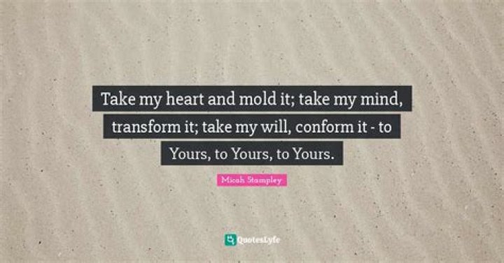 So, take my heart and mold it. Chorus So, take my heart and mold it. Take my mind, transform it. Take my will, conform it. To Yours, to Yours, oh, Lord ChorusMICAH STAMPLEY - TAKE MY LIFE LYRICS