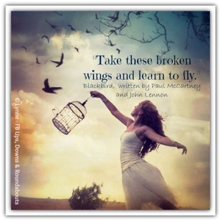 Take these broken wings and learn to fly All your life You were only waiting for this moment to arise. Blackbird singing in the dead of night Take these sunken eyes and learn to see All your life You were only waiting for this moment to be free. Blackbird fly, Blackbird fly Into the light of the dark black night. Blackbird fly, Blackbird flyGloria Gaynor - Broken Wings Lyrics