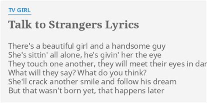 Jan 10, 2016 Lyrics for Talk to Strangers by TV Girl. There's a beautiful girl and a handsome guy She's sittin' all alone, he's givin' her the eye They touch one ...TV Girl - Talk to Strangers lyrics