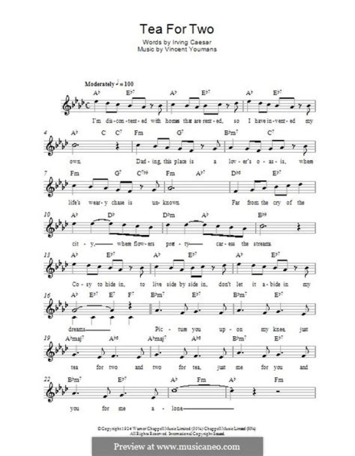 Jan 26, 2016 Lyrics for Tea for Two by Lisa Ono. Picture you upon my knee Just tea for two And two for tea Just me for you And you for me.....Tea For Two - Time and Love Lyrics