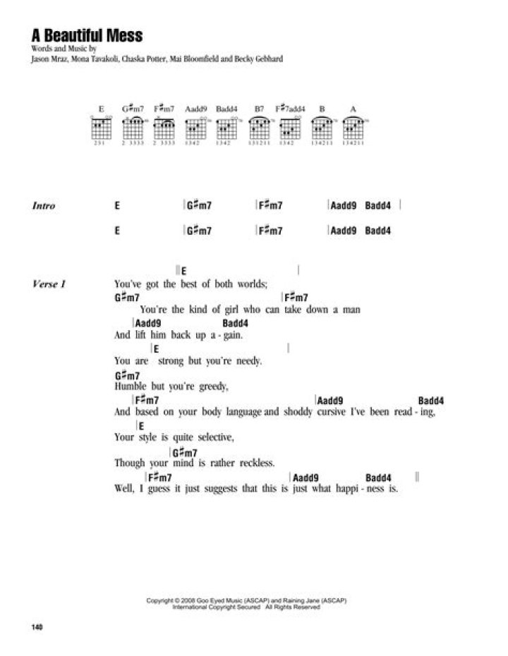 Answer: “A Beautiful Mess” is an acoustic-driven pop ballad infused with Jason Mraz’s signature style. It combines heartfelt vocals, intricate guitar melodies, and an infectious rhythm that perfectly complements the song’s introspective nature.