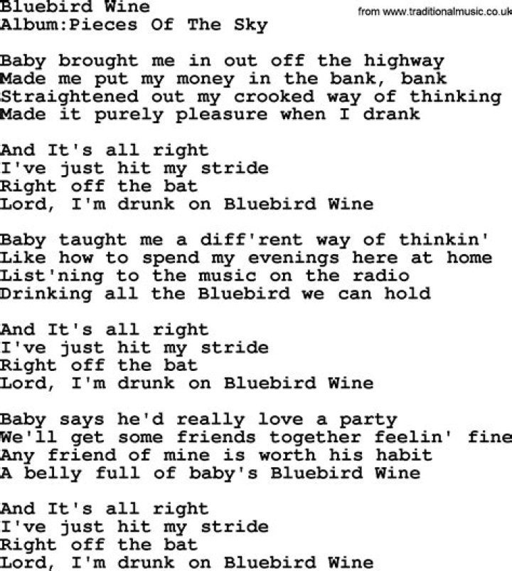The lyrics of Bluebird Wine speak of love and heartbreak, a theme that is often explored in country music. The title itself, “Bluebird Wine,” is a metaphor for sorrow and longing. The bluebird symbolizes hope and happiness, while the wine represents the bittersweet taste of love and loss.