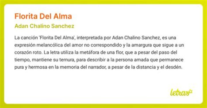 Florita, the protagonist of the song, represents the embodiment of love and beauty. Her presence brings joy and happiness to the narrator’s life. However, life’s cruel circumstances separate them, leaving the narrator with nothing but memories of their love. The song beautifully captures the feelings of longing, regret, and heartache that arise from losing someone so dear.