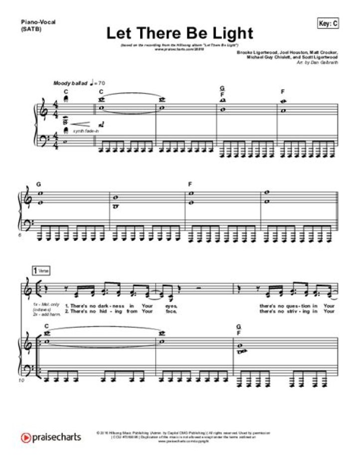 In the context of worship, Let There Be Light serves as a powerful declaration of surrender to God’s presence and authority. It reminds worshippers of the importance of seeking God’s light and allowing it to guide their lives. The song creates a sacred space where individuals can connect with God and experience spiritual renewal.