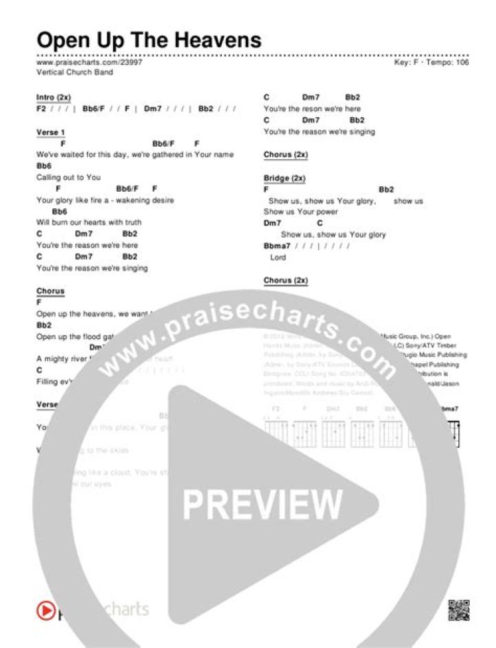 Yes, many online resources offer tutorials and chord charts for Open Up the Heavens. Websites like Worship Online and Ultimate Guitar provide chord charts and video tutorials that can help you learn to play the song on various instruments. These resources can be helpful for individuals or worship teams wanting to incorporate Open Up the Heavens into their worship sets.