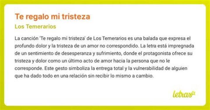 Te Regalo Mi Tristeza is a heartfelt song by Los Temerarios. Translated as “I Give You My Sadness,” it carries emotional weight and deep meaning that resonates with many listeners. The lyrics express a plea from a heart that is suffering and deeply in love, yet feeling neglected by the person they adore.