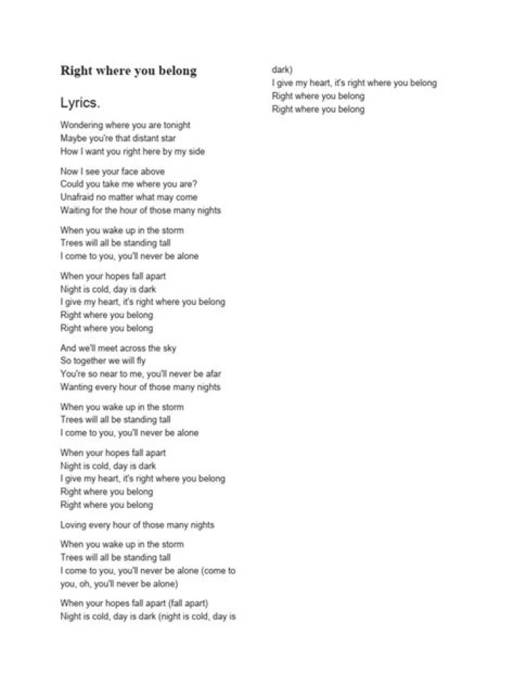 10. Can you provide some notable lyrics from Where You Belong?