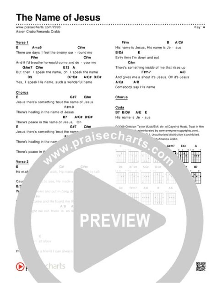 THE NAME OF JESUS CHORDS by Aaron & Amanda Crabb