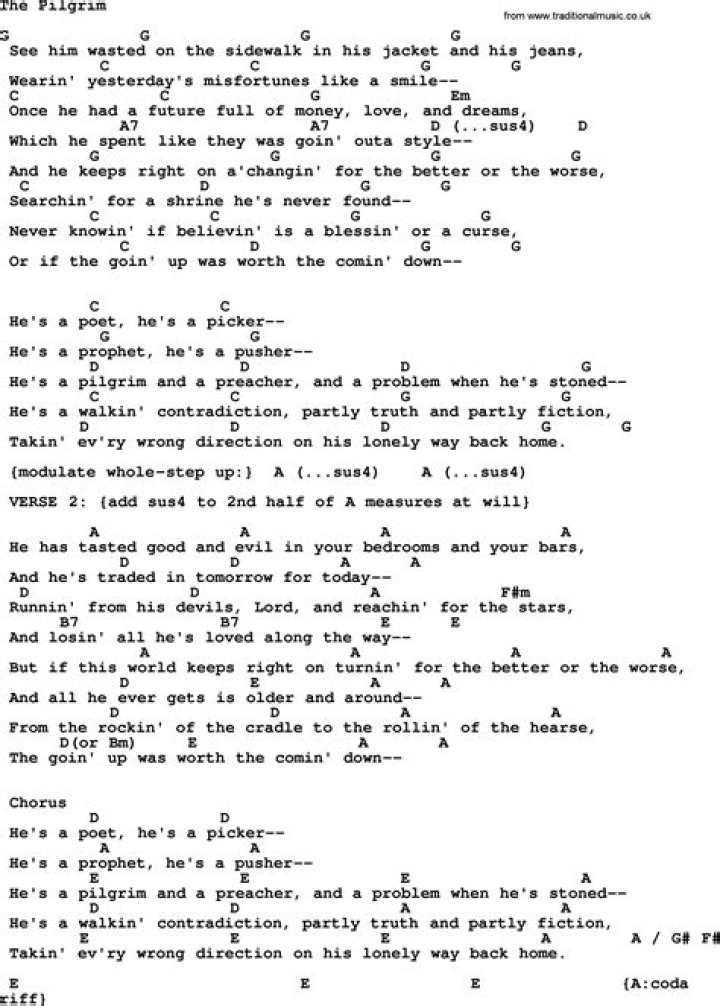 Lyrics to 'Pilgrim' by Kris Kristofferson. See him wasted on the sidewalk in his jacket and his jeans / Wearin' yesterday's misfortunes like a smile / Once he.Nitin Sawhney - The Pilgrim Lyrics