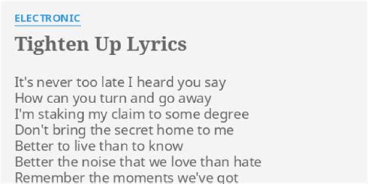 Electronic - Tighten Up Lyrics. It's never too late, I heard you say How can you turn and go away I'm staking my claim to some degree Don't bring the secret ...monolog - Tighten up ~chill vibe~ lyrics