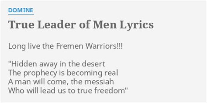 Lyrics to 'True Leader Of Men' by Domine. Long live the Fremen Warriors!!! / " Hidden away in the desert / The prophecy is becoming real / A man will come,Iron Maiden - To Tame A Land Lyrics