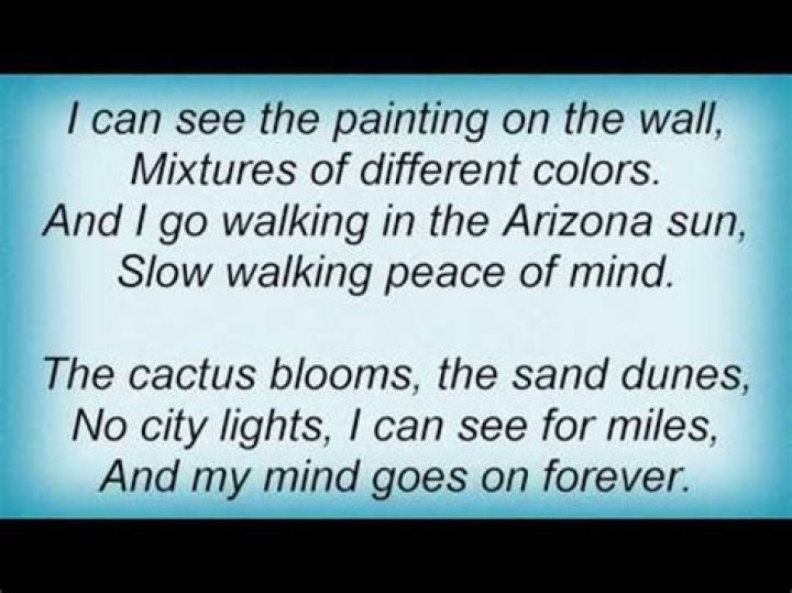 "Tucson, Arizona". I can see the painting on the wall, Mixtures of different colors. And I go walking in the Arizona sun, Slow walking peace of mind. The cactus ...THE BEATLES LYRICS - Get Back