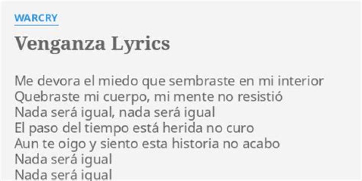Lyrics for Venganza cumplida by Chuy Vega. ... Venganza cumplida - Lyrics. Chuy Vega. Lyrics not available. Be the first to add the lyrics and earn points.Yokozuna - Quiero Venganza lyrics