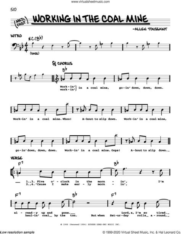 Jul 6, 2010 Lyrics for Coal Mine by InsideOut. (Melody 1) Working in a coal mine, goin' down down Working in a coal mine. Whoop! Somebody slipped ...