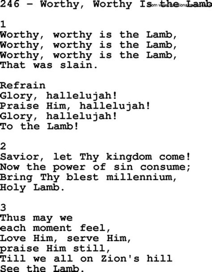 Get lyrics of Worthy is the lamb lyrics song you love. List contains Worthy is the lamb lyrics song lyrics of older one songs and hot new releases. Get known every word of your favorite song or start your own karaoke party tonight :-).
