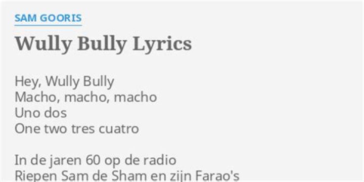 One two tres cuatro In de jaren 60 op de radio Riepen Sam de Sham en de Farao's Refrein: Wully bully, wully bully Wully bully, wully bully, wully bully Daverende ritmes en een crazy tekst En iedereen maar roepen, da's gewoon te gek Refrein (2x) Je kent de seven horses.SAM THE SHAM & THE PHARAOHS - WOOLY BULLY - REMASTERED LYRICS