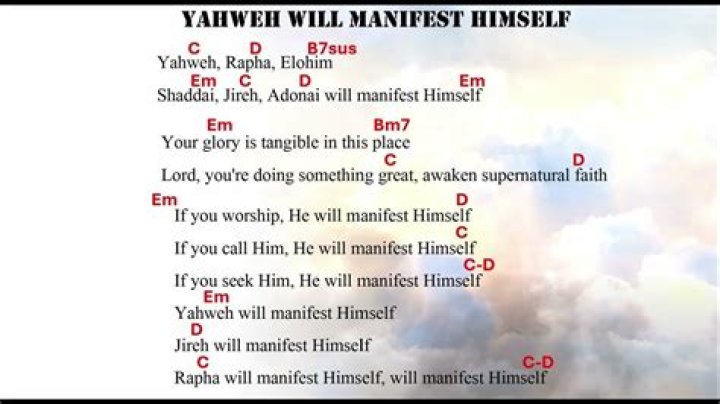 Yahweh se manifestará Jireh se manifestará Rafa se manifestará Se manifestará Yahweh se manifestará Jireh se manifestará Rafa se manifestará Se manifestará Si Le adoras, Él se manifestará Si Le llamas, Él se manifestará Si Le buscas, Él se manifestará Si Le adoras, Él se manifestará Si Le llamas, Él se manifestará Si Le buscas, Él se manifest...We Will Worship - YHWH (Yahweh) Lyrics