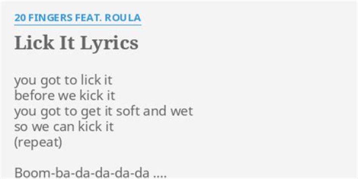 The Lyrics for Lick It by 20 Fingers feat. Roula have been translated into 1 languages You gotta lick it, before we kick it, you gotta get it soft and wet so we can kick it You gotta lick it, before we kick it, you gotta get it soft and wet so we can kick it Boom-ba-da-da-da-da ...Cal Scruby - Donnie Darko Lyrics